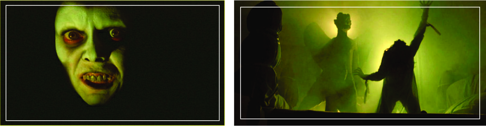 Con una Linda Blair desfigurada de su rostro dando a entender al espectador el mal que habitaba en su interior, porque ¿como puedes tu ver el mal si no lo haces físico?; aunado a esto una carga de efectos especiales donde destaca mucho el sonido.