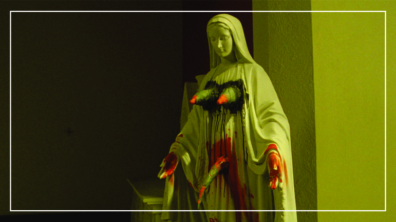 La figura de yeso de la madonna sacrílegamente deformada con elementos superpuestos, fue muy controversial disgustando a más de uno y escandalizando a otros.