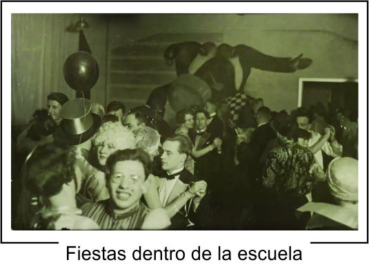 Si por algo se caracterizaba la escuela era por sus legendarias fiestas, generalmente temáticas (fiesta blanca, fiesta del metal, fiesta de los cometas) y casi siempre de disfraces, donde, como es de suponer, corría el alcohol y otras sustancias. La Bauhaus también trabajaba las fiestas como una obra de arte.