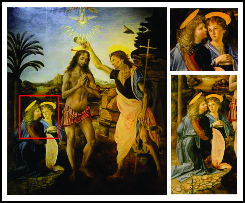 La búsqueda examinó el alineamiento de las pupilas en un retrato de Leonardo en una pintura de Verrocchio, para el cual Leonardo habría posado como modelo.