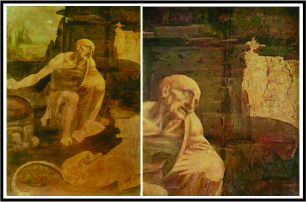 Leonardo vuelve a tomar los pinceles y en 1480 empieza a pintar “San Jerónimo”, en el cuadro captura al pobre santo golpeándose el pecho con una piedra en el desierto, en la actualidad este cuadro está colgado en el Vaticano inacabado como muchas otras de sus pinturas, sin embargo, la precisión “anatómica”, derivado de sus conocimientos en la materia hace que el dolor de San Jerónimo cobre vida ante nuestros ojos.