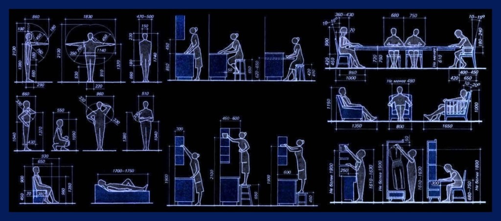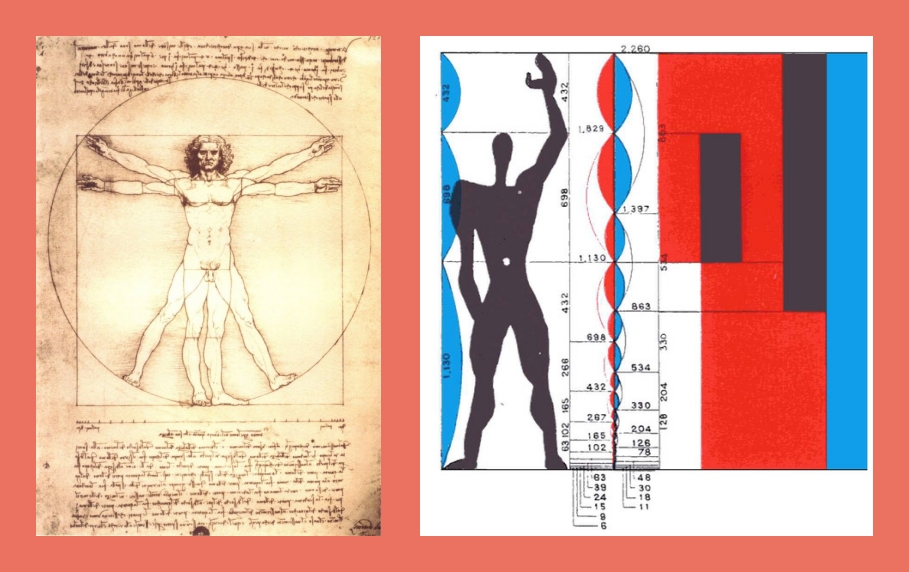 El Modulor de Le Corbusier es un sistema de diseño antropométrico equiparable al “hombre de Vitrubio” de Leonardo Da Vinci, que buscaba una relación matemática entre la figura humana y la naturaleza, pero llevado al estudio de la función y necesidad requerida en un espacio habitable.