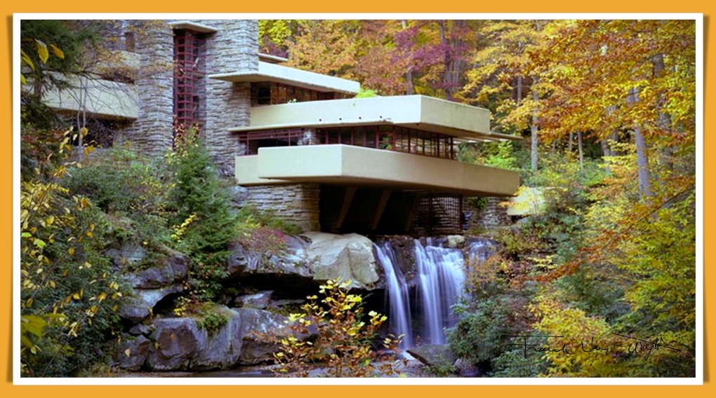 La casa de la cascada marcó hito en la historia de la arquitectura del siglo XX, construida en 1939 literalmente sobre una cascada del río Bear Run, en un condado del estado de Pensilvania en los Estados Unidos. Es la obra maestra del arquitecto Frank Lloyd Wright que consigue integrar los factores ambientales de materiales locales y el uso del hormigón con la practicidad de la función sin ser nociva, respetando el entorno; recreando un ambiente estético, armónico e idílico.