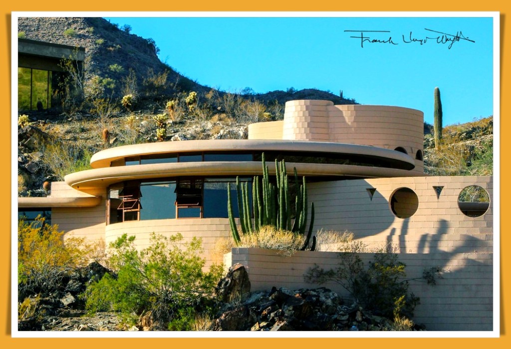 La casa circular de Frank Lloyd W. en las montañas de Arizona E.U. construida en 1958