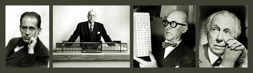 Walter Gropius, Mies Van Der Rohe, Le Corbusier y Frank Lloyd Wright