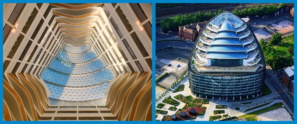 El edificio One Angel Square ubicado en Manchester, Inglaterra, fue diseñado para reducir costos de operación, menos consumo de energía y reducción en la emisión de contaminantes. Hasta el momento es una de las construcciones que tiene el más alto rango en materia sostenible, según la certificación BREEAM, la cual es una organización internacional de evaluación de arquitectura ecológica.