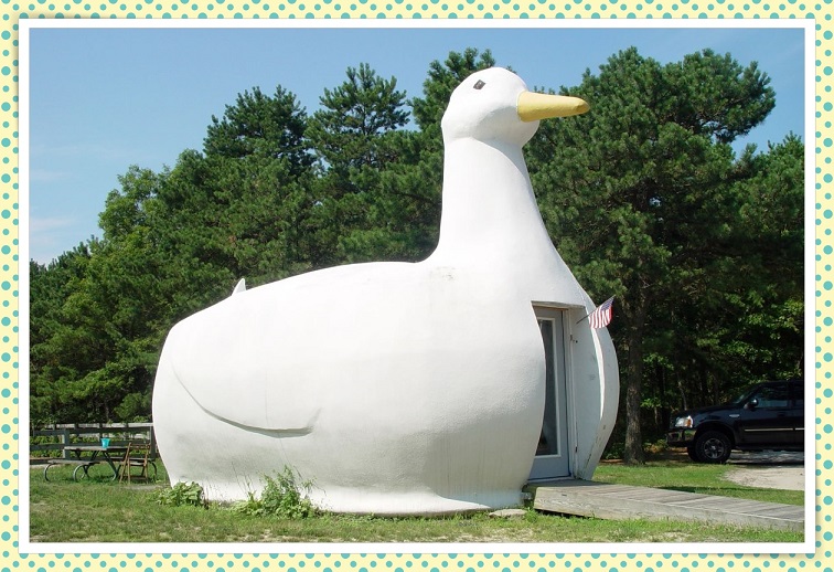 “The Big Duck” (edificio «pato») fue un criadero para la venta de patos y huevos, lo construyó un granjero en 1931 en un condado de Nueva York; actualmente es una tienda de suvenires para curiosos turistas y es una referencia teórica en el estudio del diseño arquitectónico.