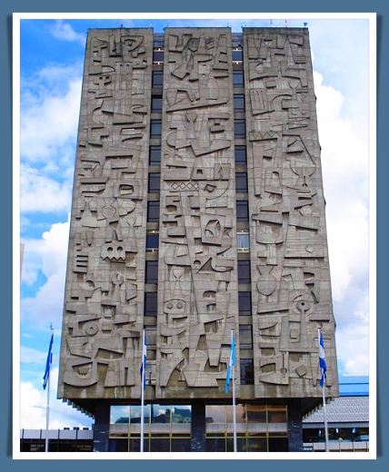 Nota: Los muros del Banco de Guatemala figuran la representación en abstracto de un códice maya en hormigón, que le da un toque único; creado por los artistas guatemaltecos Roberto González Goyri y Dagoberto Vásquez Castañeda.