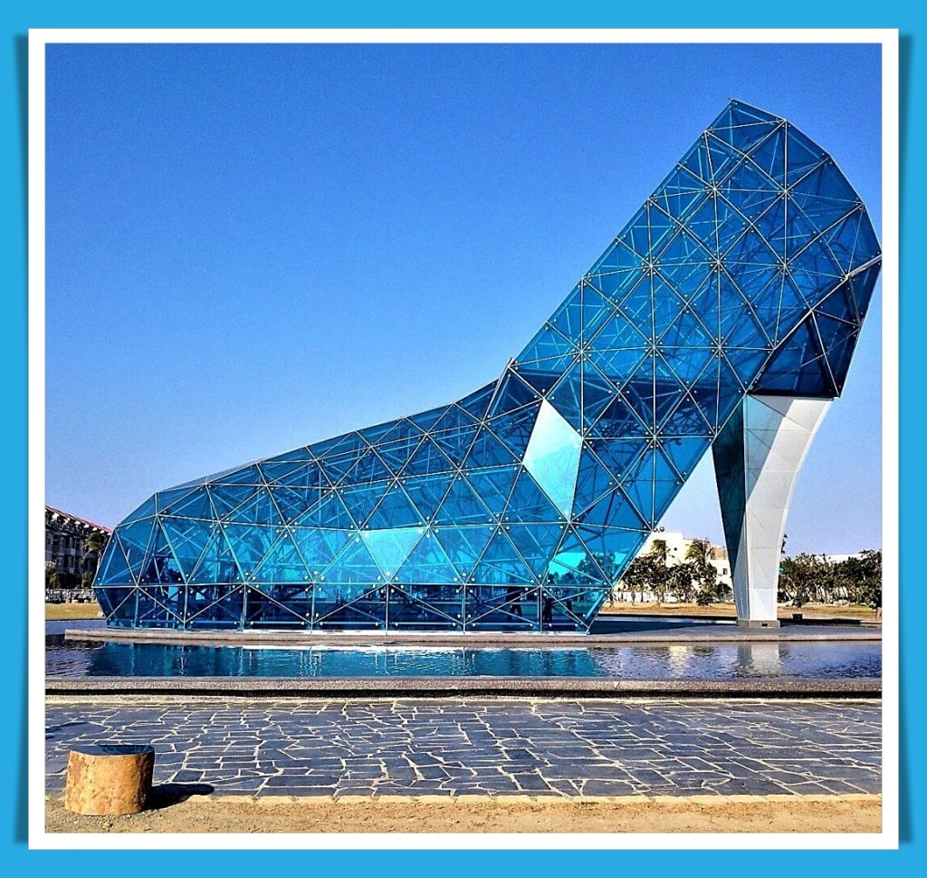 La iglesia casamentera de Taiwán en forma de zapato construida con 320 paneles de cristal azul.