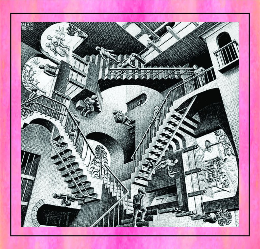 A lo largo de mi vida me han sorprendido esos artistas que de una manera casi mágica logran representar de una forma magistral sobre un plano, una realidad imposible como si de un hechizo se tratase, logrando captar una tridimensionalidad en un lienzo de dos dimensiones, cual ventana hacia otro universo paralelo; eso es lo que M. C. Escher consigue en sus grabados; atrapar al espectador en insólitos sitios donde la imagen escapa de las reglas de toda lógica, mundos donde seres extraños se mueven en todas direcciones y cada una de ellas tiene su sentido aparentemente coherente desde la perspectiva relativa de ese ser; o de paisajes que cambian de noche a día en un mismo plano sin ni siquiera entender cómo es que sucede. Escher fue un artista que rompió con los esquemas visuales tradicionales del arte y la forma, y en como el espectador se involucra con ellas, Escher plasma una realidad diferente que se muestra extraña, mágica y fascinante; pero que transporta e invita a experimentar otra perspectiva, otro mundo.