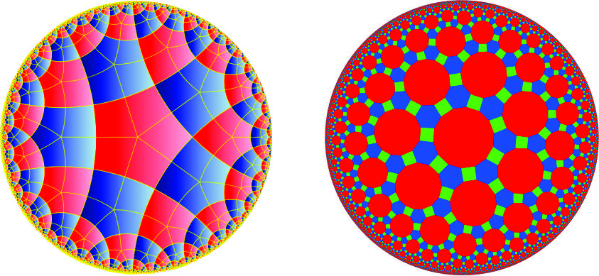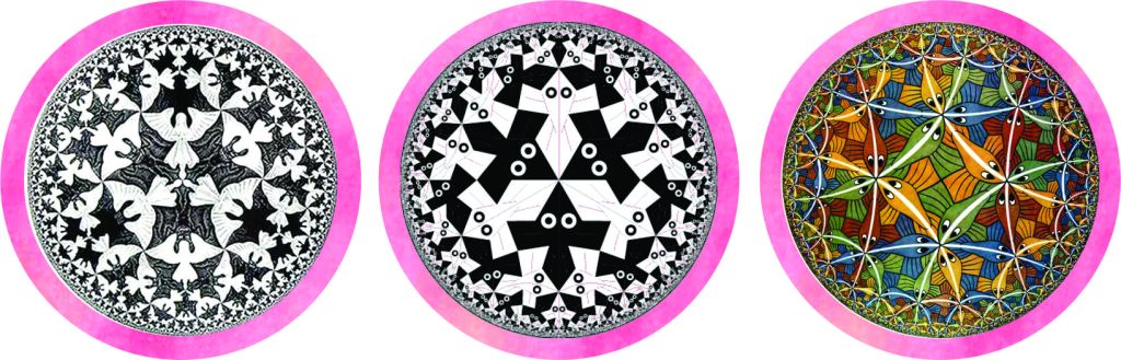 Escher experimento en diferentes formas las teselaciones hasta llegar a lo que llamaríamos efecto Poncairé.