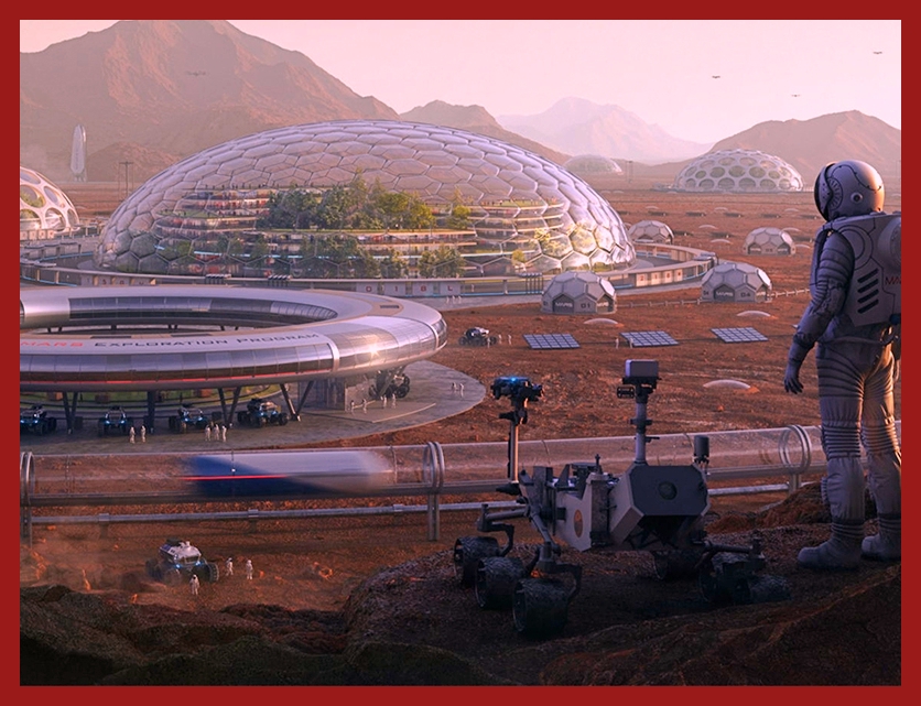 Todavía son solo “sueños guajiros”, la terraformación predispone crear un ecosistema en Marte para transformarlo en un planeta habitable y sostenible, así que por el momento es una idea hipotética que implicaría titánicas tareas como; reconstruir la atmósfera para calentar al planeta mediante el efecto invernadero; derretir el hielo que está en los polos y en el interior de la superficie para crear un océano, al que se tendría que exportar toneladas de fitoplancton (algas marinas) para generar oxigeno en grandes cantidades; también se requiere crear un escudo magnético a modo de magnetosfera para protección de la letal radiación solar y luego reforestar, además de encontrar la solución a las implicaciones de los efectos que sufriría el cuerpo humano al vivir en un ambiente de menor gravedad, como pérdida ósea y muscular… y muchos otros etc. Hay propuestas teóricas de cómo podría lograrse, sin embargo, no contamos aún con la tecnología para realizarlo. Pero que no cunda la desesperanza, al menos ¡Ya tenemos himno y bandera para los futuros colonos! y no solo eso, fuera de broma existen proyectos arquitectónicos de ciudad marciana como: