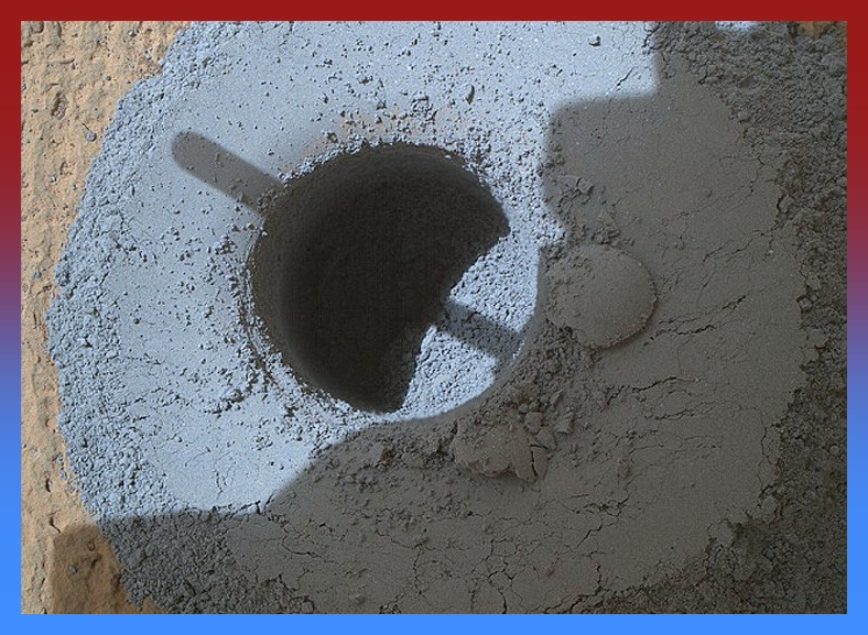 Habían pasado 180 días marcianos (denominados «soles») desde el amartizaje del MSL en una de las misiones de exploración espacial de la NASA, que se posicionó a los pies de una impresionante montaña escarpada, situada extrañamente sobre una depresión por impacto, el cráter Gale; cuando un brazo robótico se extendía para que un taladro integrado perforara el suelo a escasos 6.4 centímetros de profundidad, a lo ancho de 1.6 del grosor de la broca. Se trataba de la primera muestra del interior de una roca marciana obtenida con éxito el 6 de febrero de 2013 por un astromóvil, un Rover; nuestro amigo Curiosity antecesor del Perseverance.