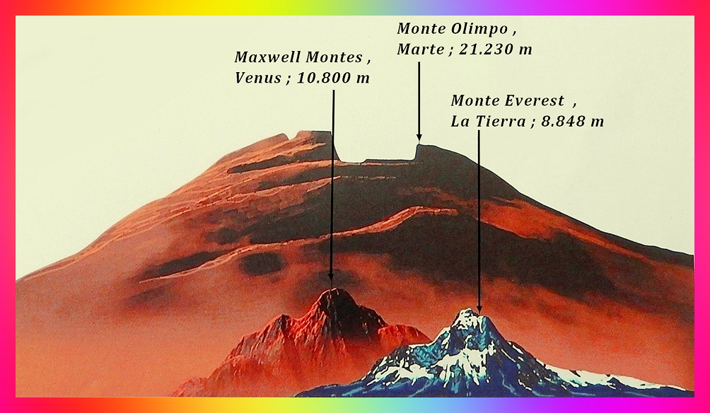 Además cuenta con el Monte Olimpo el volcán más alto de todo el sistema solar del que se sabe hasta ahora; tiene una altura de 22.5 km. El cual resalta en comparación a la cumbre más elevada de nuestro planeta, el Everest con 8.84 km. Casi tres veces más alto.