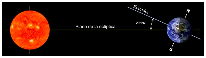 La inclinación axial es el ángulo formado entre el eje ecuatorial de un planeta y el plano de su órbita.