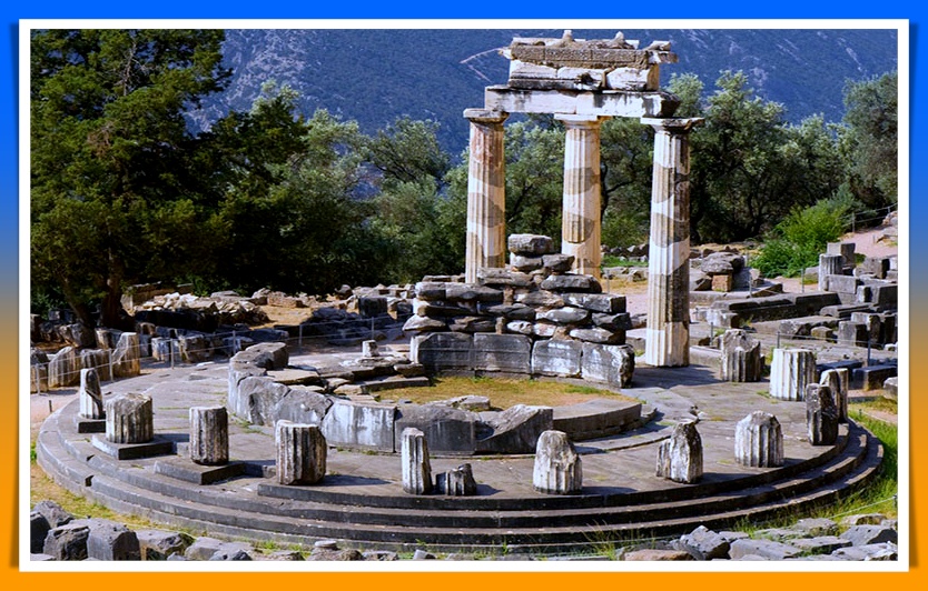 Se erguían teatros, gimnasios, palestras (escuelas de lucha), estadios, hipódromos, ágoras (plazas públicas) y estoas, que eran una especie de pórticos o accesos a las ágoras. Pero eran los santuarios los de mayor importancia como el Oráculo de Delfos, la apoteosis de Apolo el dios de la profecía y la música, por lo que le componían himnos, de los que se encontraron dos fragmentos entre los escombros del muro sur del templo.
