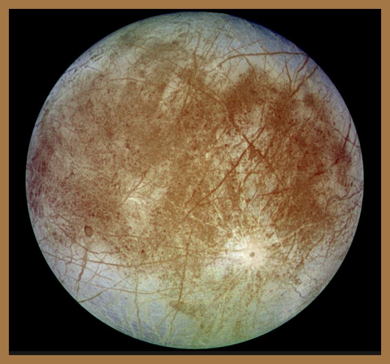 Europa apenas un poco más pequeña que nuestra Luna, es uno de los lugares más prometedores para la búsqueda de algún tipo de vida más allá de la Tierra. Bajo su superficie congelada, se cree que existe un vasto océano de agua líquida, posiblemente en contacto con un lecho rocoso. Posee una tenue atmosfera compuesta de oxígeno y otros gases. Su corteza carece de cráteres, es lisa. Cuenta con un recubrimiento de hielo que muestra signos de grietas que se ven como rayones, al parecer se cree en la posibilidad de que pueda tener indicios de placas tectónicas, como ningún otro astro en el sistema solar, independientemente de nuestro planeta Tierra, siendo una de las condiciones que lo pueden hacer apto para albergar vida.