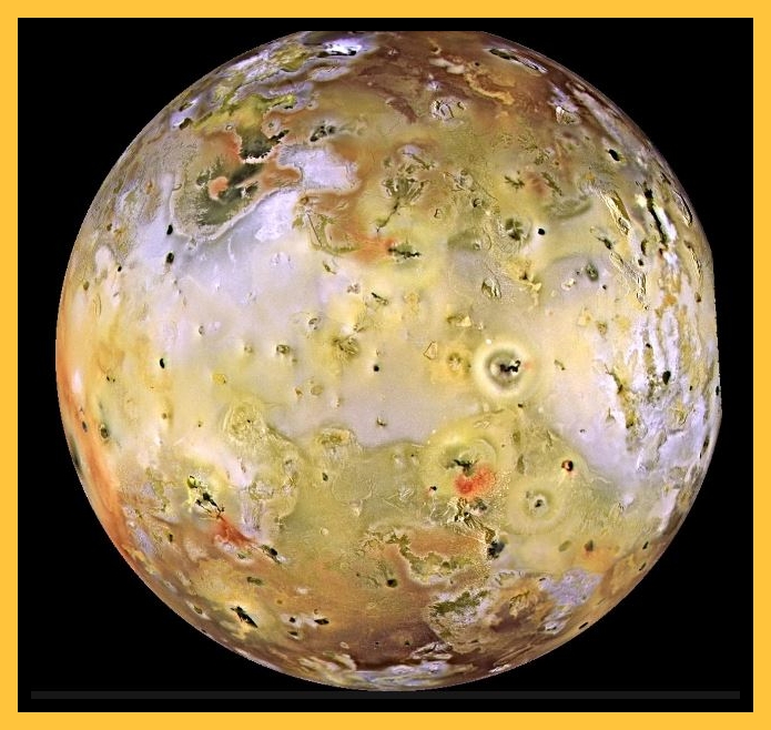 Las explosiones volcánicas de Ío son de azufre, lo que le da su peculiar colorido único en el sistema solar.