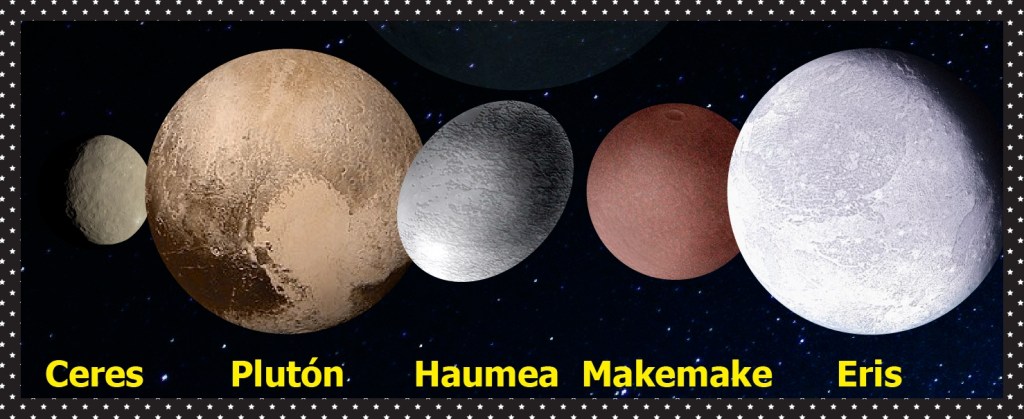 Mas planetas enanos son: Plutón, Haumea, Makemake y Eris, pero ellos orbitan en otro Cinturón, el de Kuiper, que está más allá de la órbita de Neptuno, a los que también se les llama objetos trasneptunianos.