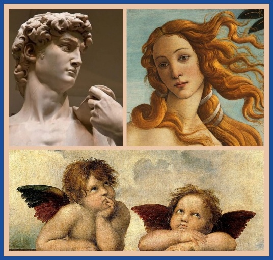 - En la pintura las obras maestras combinaban la belleza clásica con una profunda comprensión de la anatomía humana y la perspectiva.